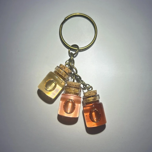 Este elegante llavero presenta tres mini botellitas que ilustran la evolución del vino rosado a través del color: el rosado pálido de un vino joven, el rosado salmón de un vino en su punto de madurez, y el tono cobrizo característico de un vino rosado con mayor evolución. Una pieza única para amantes del vino, ideal como herramienta educativa, souvenir o regalo con estilo y significado.